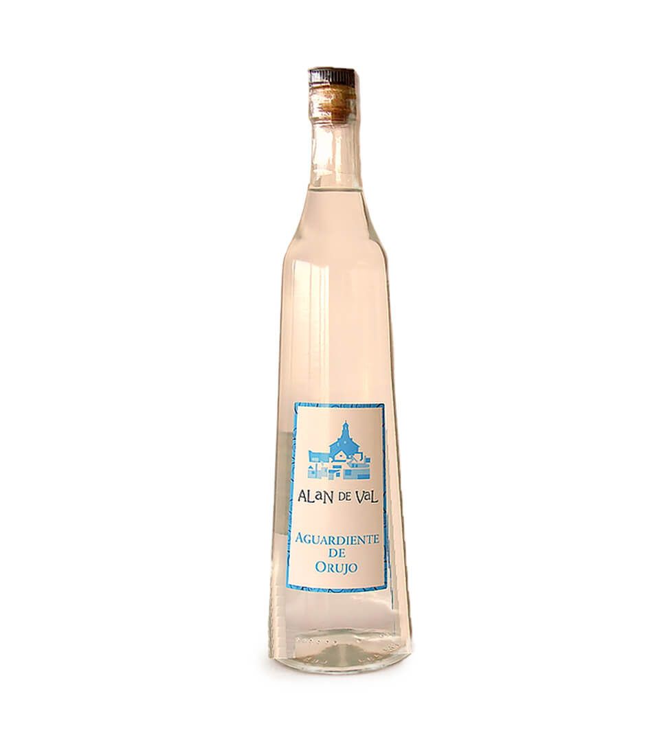 Aguardiente de orujo obtenido a partir de una esmerada selección de bagazos, mediante destilación por el método tradicional de arrastre de vapor y destilación fraccionada.