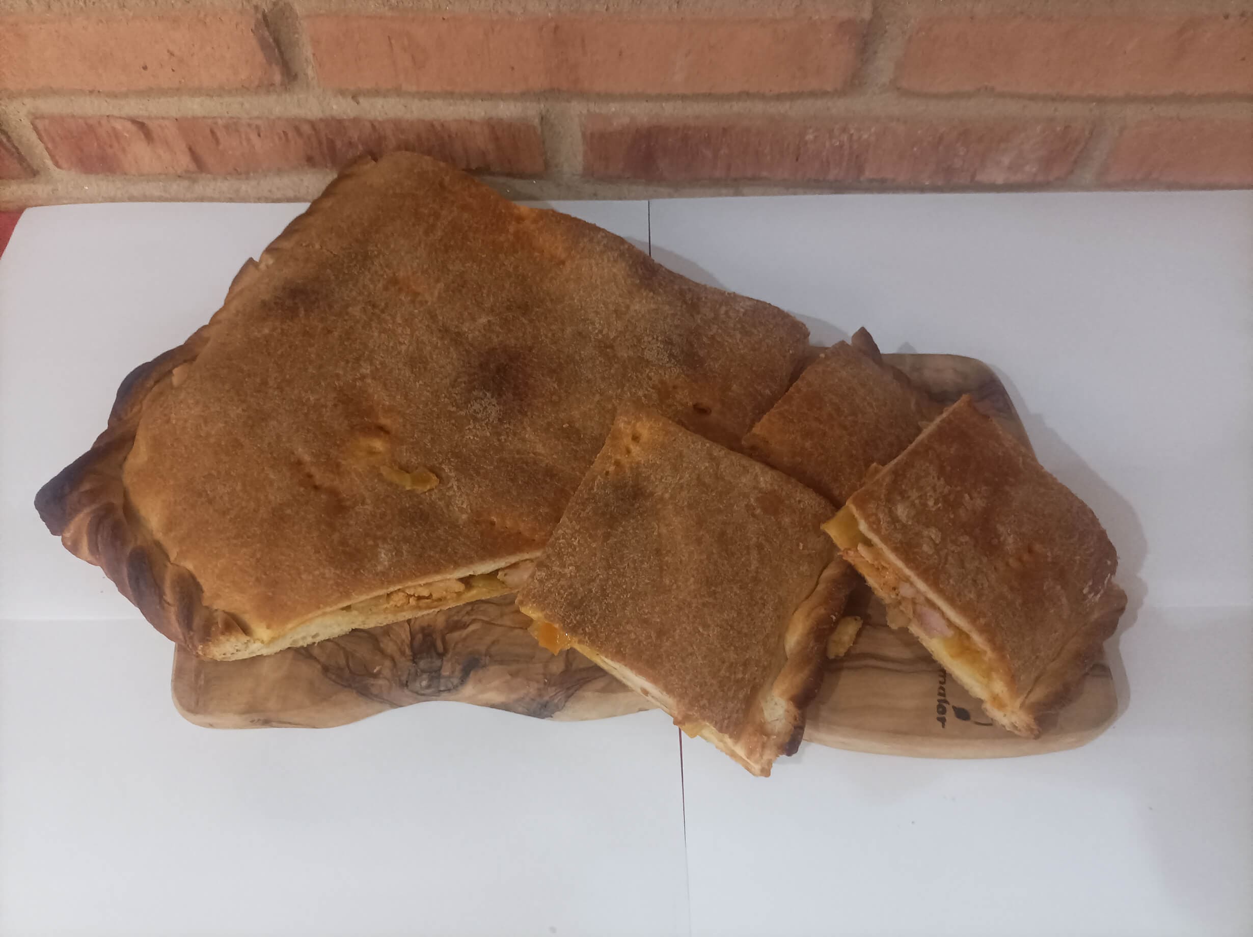 Empanada gallega de pollo deshuesado, elaborada de forma tradicional en un obrador de pan situado en plena comarca de Valdeorras y cocida en horno de leña. Para su elaboración se utilizan ingredientes naturales de alta calidad.