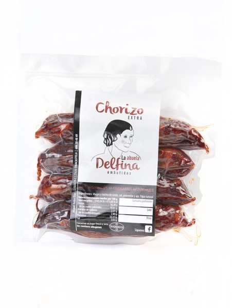 INGREDIENTES: Magro de cerdo, panceta, pimentón dulce y picante desbinzado, ajo natural, sal y tripa de cerdo.