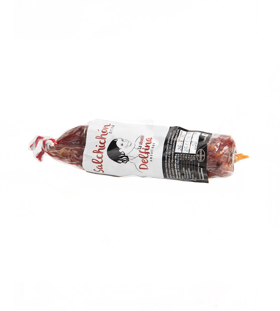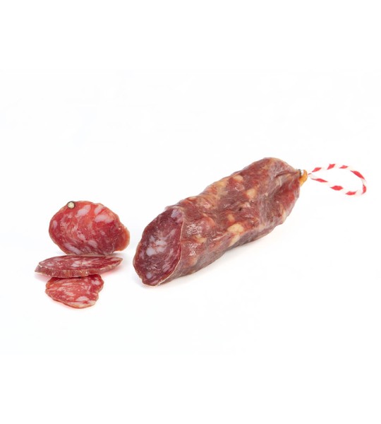 Magro de cerdo, panceta, pimienta y otras especias, sal y conservantes, tripa natural con harina de maíz.
