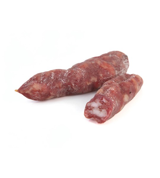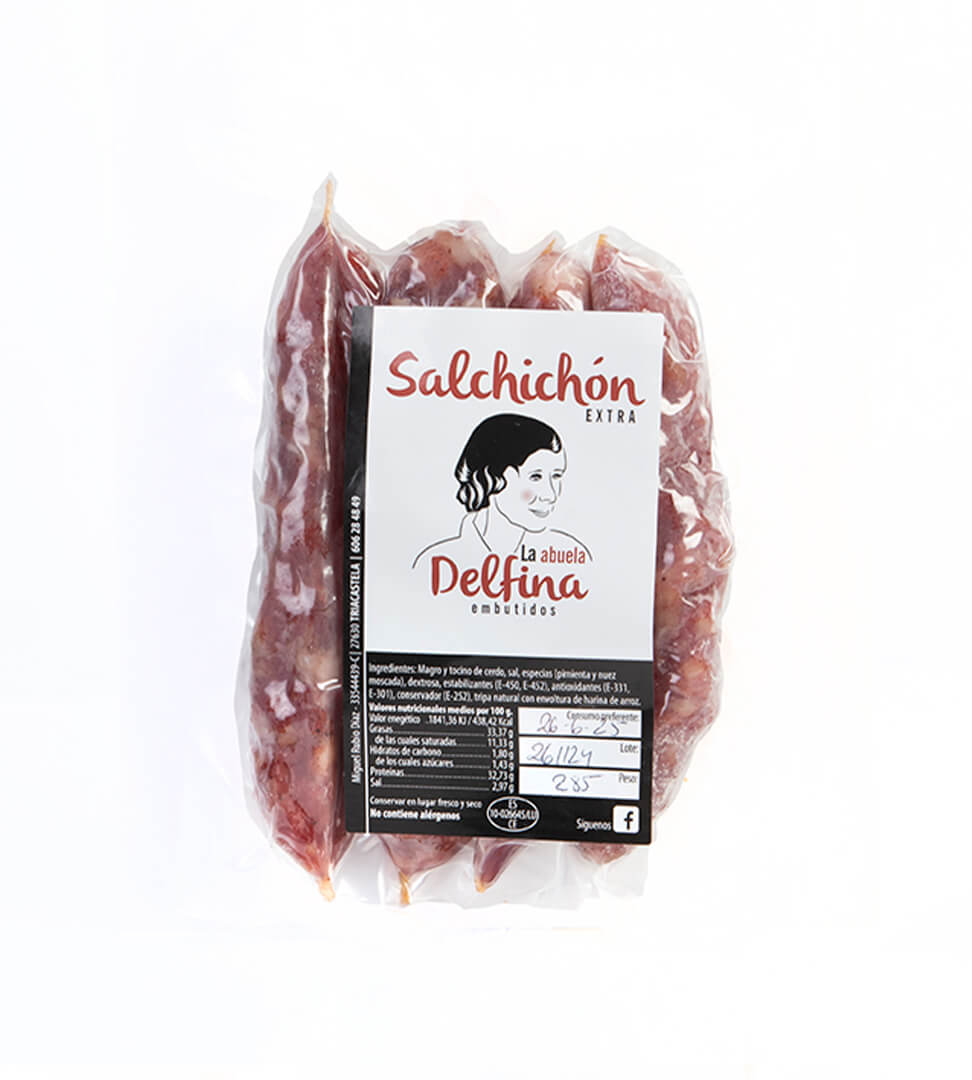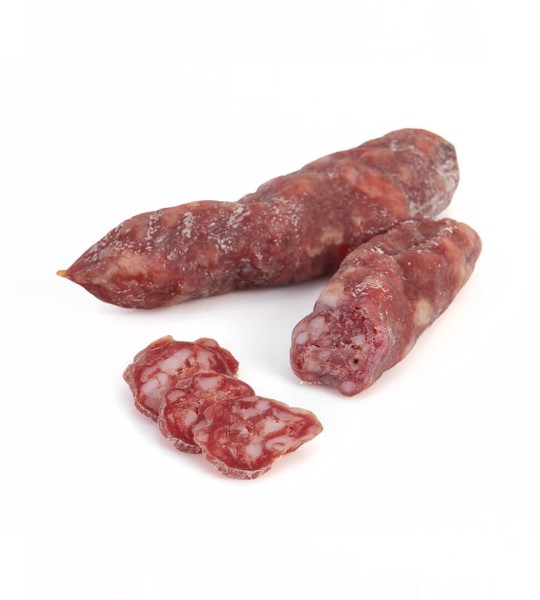 Magro de cerdo, panceta, pimienta y otras especias, sal y conservantes, tripa natural con harina de maíz.